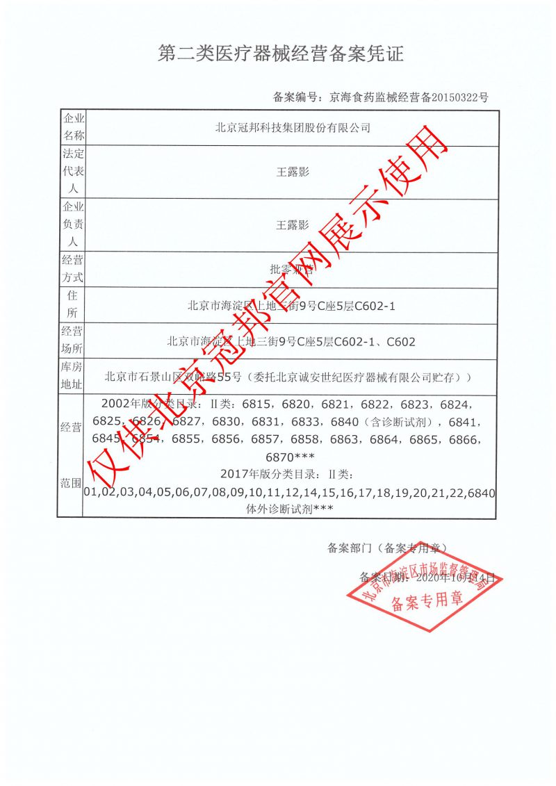 北京冠邦科技集團(tuán)股份有限公司是集研發(fā)、生產(chǎn)、銷售為一體的醫(yī)療器械企業(yè)。2004年入駐北京市中關(guān)村上地信息產(chǎn)業(yè)基地,榮獲“高新技術(shù)企業(yè)”認(rèn)證、中國(guó)醫(yī)療器械CMD質(zhì)量體系認(rèn)證和CE認(rèn)證。